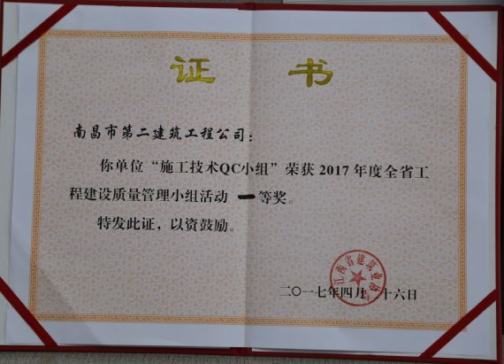技術(shù)質(zhì)檢部貫徹公司質(zhì)量標準化管理精神,以切實(shí)提高工程質(zhì)量為目標,積極開(kāi)展全面質(zhì)量管理技術(shù)攻關(guān)活動(dòng),所撰寫(xiě)的《提高GC泡沫水泥保溫板外墻外保溫施工質(zhì)量 》QC課題成果,榮獲“2017年度全省工程建設優(yōu)秀質(zhì)量管理小組活動(dòng)一等獎”。